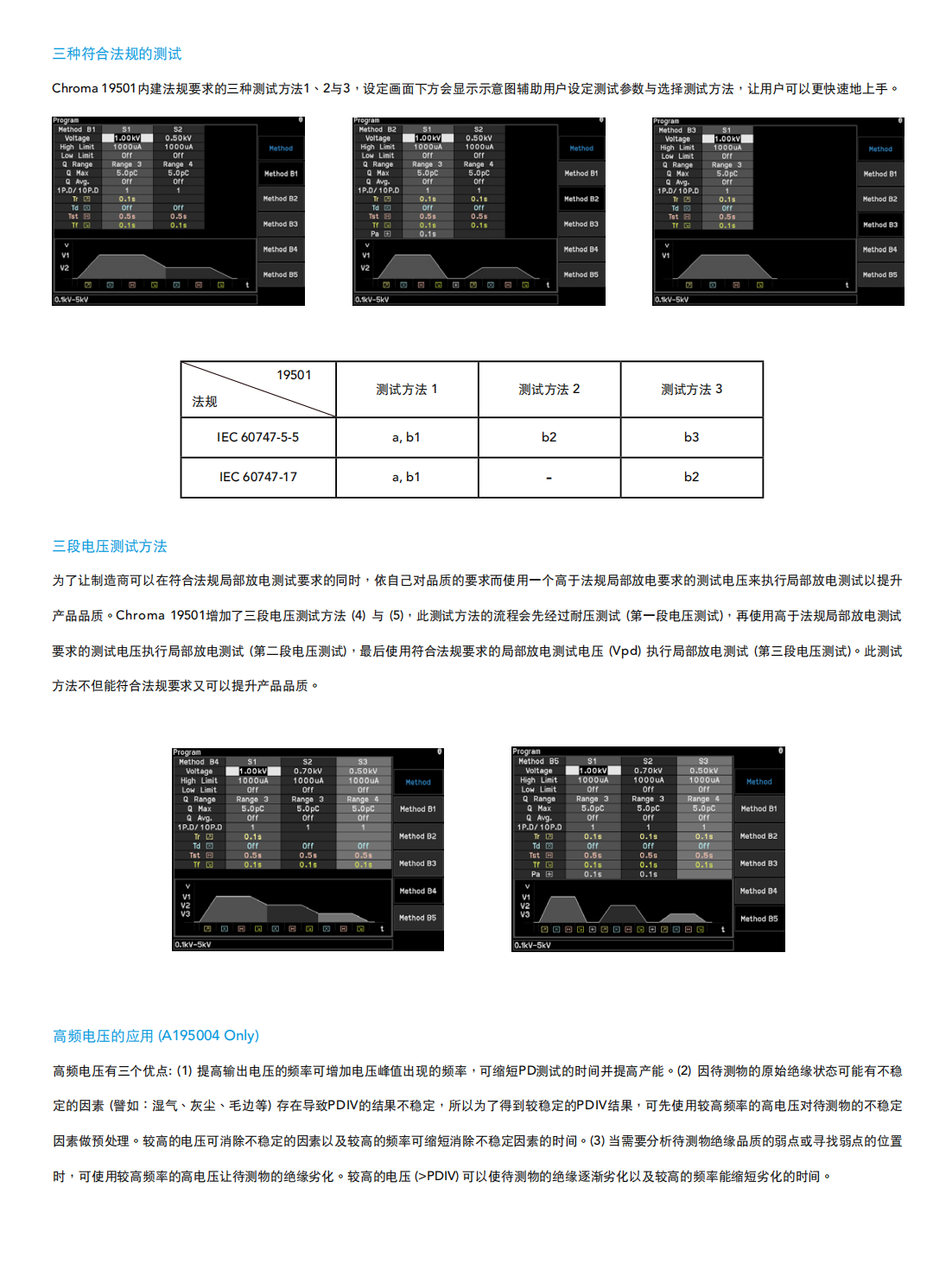 Chroma 19501局部放电测试器可提供交流耐电压测试(Hipot Test)测量待测物上的漏电(Leakage Current)与电气闪络(Flashover),以及提供局部放电(Partial Discharge,PD)测量待测物上局部放电的电荷量(pC)对高压元件与高耐压的绝缘材料进行交流耐电压与局部放电测试,可确保产品的绝缘品质与提升产品的可靠度。