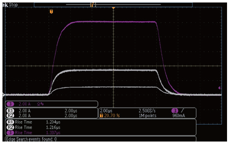 ▲ 图2:10A/3.5A/1A 10uS 脉冲曲线