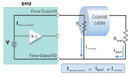 ▲ 三轴转接线(Triaxial Cable)可用来消除导线的电容(Cable Capacitance)