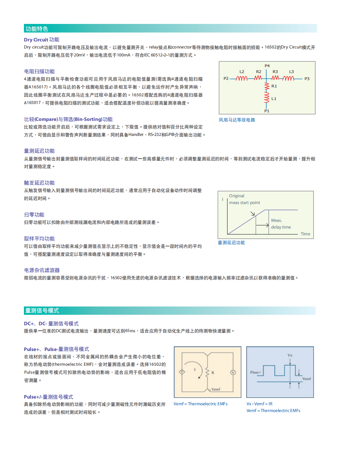 Model 16502是数位式毫欧姆表,具有0.05%基本准确度,并提供0.001mΩ~1.9999MΩ的量测范围,量测时间最快可达65ms,应用于自动化生产、品管进出料品检验及提供研发单位使用。