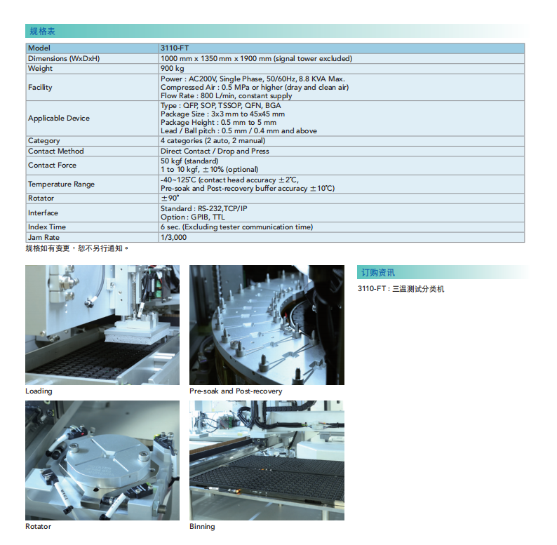 Chroma 3110-FT为一台适用于IC终端测试(Final Test)工程产品特性及测试开发用途之测试分类设备。