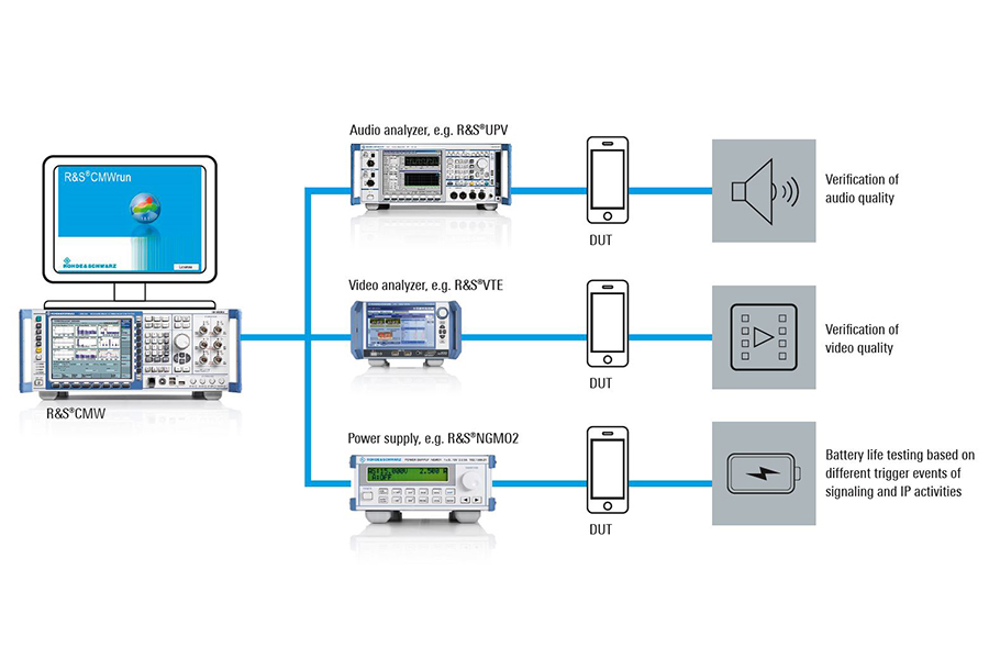 R&S®CMW 测试平台可在真实的模拟条件下执行、记录和评估复杂的用户体验测试。R&S®CMW 测试仪结合 R&S®CMWrun 自动化工具,提供了市面上一流的高测试带宽。